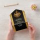 A beautiful and regal all-in-one invitation featuring a luxurious royal crest topped with a crown that has golden Indian elephants on either side of it framed by a black inlay edged with faux gold and a lush damask vibrant backdrop. White text templates for your custom wording appear on both sides. The bottom third has a tear off response card with personalized rsvp address for your guests to complete plus the same regal elephants on black circle edged with gold on the same golden damask backdrop. These are ideal for Hindi, Hindu, Sanatani Dharma and ethnic asian weddings weddings, engagements, anniversaries; bridal showers and birthday parties. Simply change the wording to suit your special event or occasion.