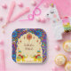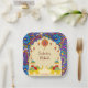 Playful Indian wedding elephants blue and yellow personalized name paper plates, yellow pattern background, cute wedding elephants, for table decor for mehndi, haldi or wedding.