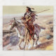 Charles (CM) Russell, the “cowboy artist”, created more than 2,000 paintings of cowboys, Indians, and landscapes set in the Western United States. He lived and worked among the cowboys and the Blood Indian tribe in his younger years. This painting is called “Indian With Spear” and depicts an Indian brave holding a long spear and galloping across the plains on a white horse.