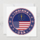 Badge of Indiana with flag of Indiana and flag of USA colours, rounded shape.