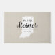 Modern farmhouse personalized doormat with your family name inside your state map. Faux burlap canvas texture background. Click Customize It to add your own text and images and create a unique one of a kind design!