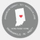Unique State of INDIANA New home address label sticker set on a grey background with a red heart & airplane.