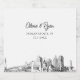 Modern Indianapolis wedding skyline personalized champagne label. The design showcases a stunning sketch with the ability to customize your names and exact location. Enter the Zazzle design tool for additional customizations.
