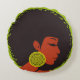 Bleu et noir, rond. Se glisse dernière le dos pour le soutenir. La qualité d'impression est excellente.
