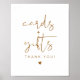 This cards and gifts sign printable cards and gifts sign template features a modern minimalist design and fully editable wording with a bohemian burnt orange and white colour combination. Easily change the fonts, font colours, and background colour to match your event style. Pair with additional items from the INDIE Collection for a cohesive look.