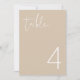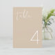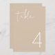 Ce numéro de table mariage est doté d'une police manuscrite pointue et d'un design minimaliste moderne avec une combinaison de tons taupe et blanc. Modifiez facilement le numéro pour créer tous vos numéros de table. Toutes les couleurs sont modifiables.
