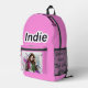 Step into Indie’s world with this bold, confident, and ultra-stylish backpack design! Featuring Indie in a photorealistic full-body pose, rocking her signature pink and green streaked hair, round glasses, and trendy outfit, this backpack is made to stand out.