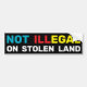 History tells the truth—"American" land was taken. “Not Illegal on Stolen Land” is stacked in white, red, yellow and turquoise text over a black background (indigenous flag colours), making a sharp political statement. The design honours Indigenous resistance, immigrant rights, and the call to decolonize not just land, but mindsets.