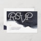 Design moderne chic simple typographique RSVP sur arrière - plan couleur bleu indigo foncé, idéal pour mariage moderne, mariage du soir ou mariage nautique. Voir toutes les pièces correspondantes dans la collection ci-dessous.