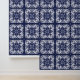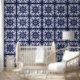 Indigo Blue and White Mediterranean Tile Pattern Wallpaper