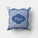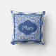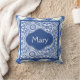 Monogram or text pillow. Gorgeous indigo blue and white patterns, plaid on the outer edge, and floral on the inside, with a large medallion of indigo blue in the centre. Text is ready for you to edit on BOTH sides of this beautiful toss pillow.
