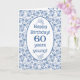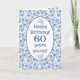 A very pretty 60th Birthday Card, with an Indigo Blue floral pattern on the front cover and a Faux Lace trim on the inside, where you can also personalize the message. This design is part of the Posh and Painterly 'Indigo' collection and can easily be adjusted to fit any card size.