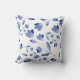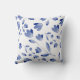 Indigo Blue Watercolor Flower Stems Pattern Throw Pillow