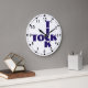 This lightweight acrylic wall clock face is modernly designed with the indigo words "Tick Tock" in a crossword puzzle style design. The design includes an outer ring of black elements and an inner ring of black numbers. Be sure to check out the smaller 8" diameter.