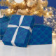 Indigo dark blue striped circle pattern on blue wrapping paper