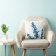 Indigo Fern White Plant Botanical Painting Throw Pillow