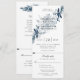 Blue indigo watercolor floral sweep wedding invitation with rsvp attached