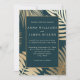 Indigo Green Gold Tropical Palm Leaves Wedding Invitation