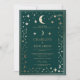 Celebrate your wedding with this celestial constellation invitation. Featuring an indigo green background with printed gold-effect stars, moon, and constellation details, it brings a magical and elegant vibe to your special day. The back includes space for a customizable photo, making it a personal keepsake for your guests.