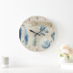 Indigo Ocean Beach Sketchbook Watercolor Shells Large Clock