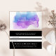 Encourage your customers and clients to share the love with these chic watercolor referral business cards. Front features a single line of custom text on a watercolor paint blot backdrop in eyecatching shades of indigo blue and violet purple. Add your contact information and referral terms to the reverse side using the template fields provided. Includes space for the referrer's and new customer's names.