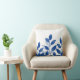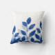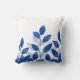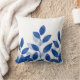 Indigo Watercolor Leaves Throw Pillow