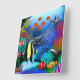 Original fine art painting of colourful Indo Pacific reef fish and corals by artist Carolyn McFann of Two Purring Cats Studio printed on a quality and customizable wall clock for tropical saltwater aquarium and scuba diving fans.