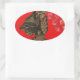 Indonesi Shadow Puppet Hohoho Design on Red canvas Oval Sticker