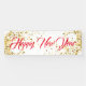 This Holiday banner is shown in the indoor style, Shown in White with Red "Happy New Year" text in a fancy script with two Gold looking swirls of stars on each end.