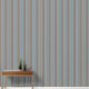 An opulent mix of multicolored stripes in various sizes with blue, brown, and tan.