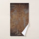 Unique, artsy, affordable, masculine design hand towel, featuring an easily editable first name or nickname and short text over abstract brown pattern background.
