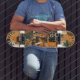 This skateboard design brings an industrial edge to the skatepark, featuring earthy tones of rust, olive green, and beige, paired with abstract mechanical elements like gears and grids. The design’s raw brushstrokes and rugged textures evoke the feel of an urban, industrial landscape, perfect for skaters who appreciate bold, edgy aesthetics. With a harmonious blend of graffiti-inspired abstraction and mechanical motifs, this deck is ideal for those seeking a unique, gritty style that stands out from the crowd.