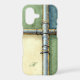 A creative industrial-style case featuring intersecting metallic pipes with gold textures and soft watercolor shades of green, blue, and cream — personalized with a subtle monogram for a bold yet artistic touch.