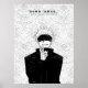 A striking black and white anime-style illustration featuring a blindfolded sorcerer activating an infinite domain. Clean linework and dark minimalist aesthetics make this artwork perfect for anime and dark fantasy fans seeking bold modern wall decor.