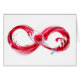 Infinity symbole of continuous stream of red pouring into glass glass glass on white background.