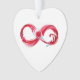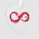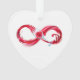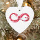 Infinity symbole of continuous stream of red pouring into glass glass glass on white background.