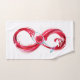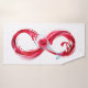 Infinity symbole of continuous stream of red pouring into glass glass glass on white background.