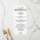 Accentuate your decor by adding a menu card. As your guests look forward to the bride and groom's entrance or the presenting of the guest of honour, they can find a menu card at their setting adds a nice touch. Personalize and create your menu by adding, and changing the text in the fields provided. You can change font style, size, and colour, paper type, as well as change the background colour.