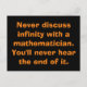 Never discuss infinity with a mathematician. You'll never hear the end of it.