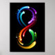 Symbol of infinity is artistically painted with fast moving, bright, luminous, rainbow colored comets with long flexible tails on black background. Rainbow infinity.