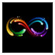 Symbol of infinity is artistically painted with fast moving, bright, luminous, rainbow colored comets with long flexible tails on black background. Rainbow infinity.