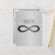 Infinity symbol on brushed metal texture postcard. Delete or change sample text, font, font colour, font size to your choice. Images can be rotated, deleted or re-sized.
