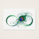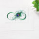 The symbol of infinity with a bright, green, artistic peacock feather on a white background. Tattoo style.