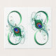 The symbol of infinity with a bright, green, artistic peacock feather on a white background. Tattoo style.