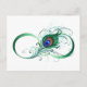 The symbol of infinity with a bright, green, artistic peacock feather on a white background. Tattoo style.