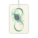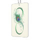 The symbol of infinity with a bright, green, artistic peacock feather on a white background. Tattoo style.