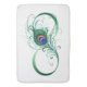 The symbol of infinity with a bright, green, artistic peacock feather on a white background. Tattoo style.