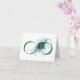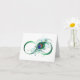 The symbol of infinity with a bright, green, artistic peacock feather on a white background. Tattoo style.
