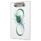 The symbol of infinity with a bright, green, artistic peacock feather on a white background. Tattoo style.