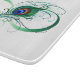 The symbol of infinity with a bright, green, artistic peacock feather on a white background. Tattoo style.